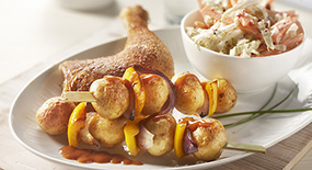 BBQ Chicken with Potato Skewers and Coleslaw