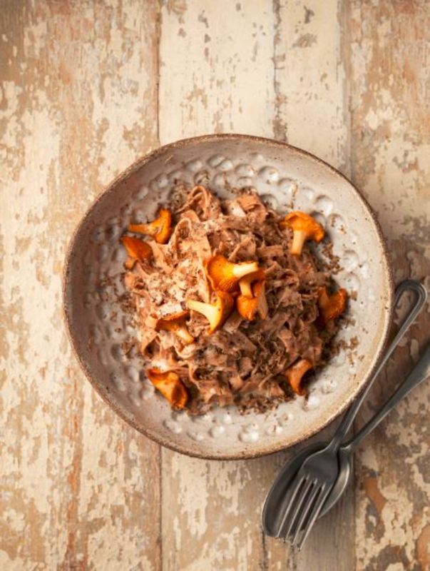 Chestnut Pasta with Truffle Sauce and Chanterelles by Simon Rogan