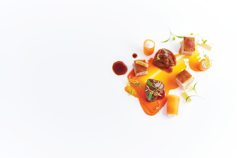 Braised Pork Belly and Cheeks, Pickled Carrot, Ginger and Coriander recipe by Daniel...