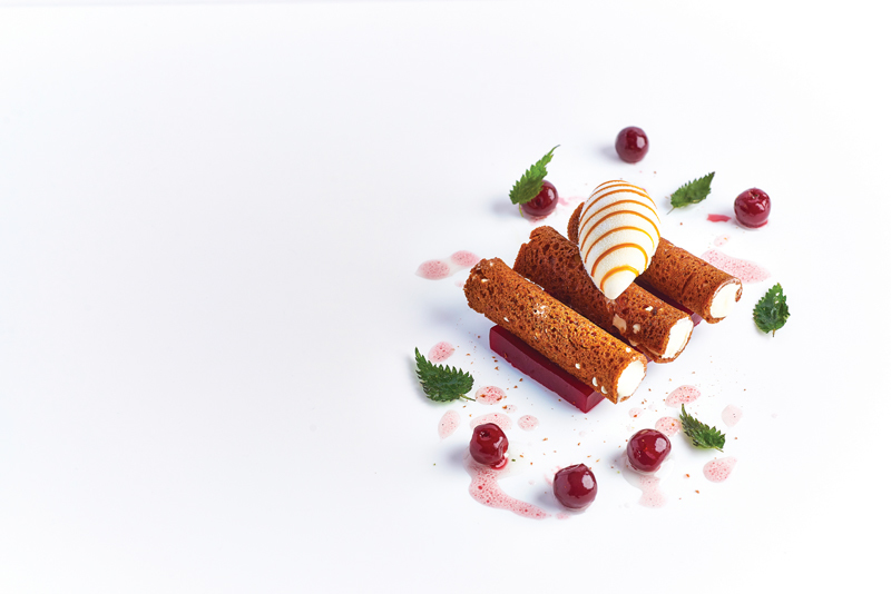 Cannelloni of Gingerbread, Kirsch Mousse and Cinnamon Ice Cream recipe by Daniel Clifford