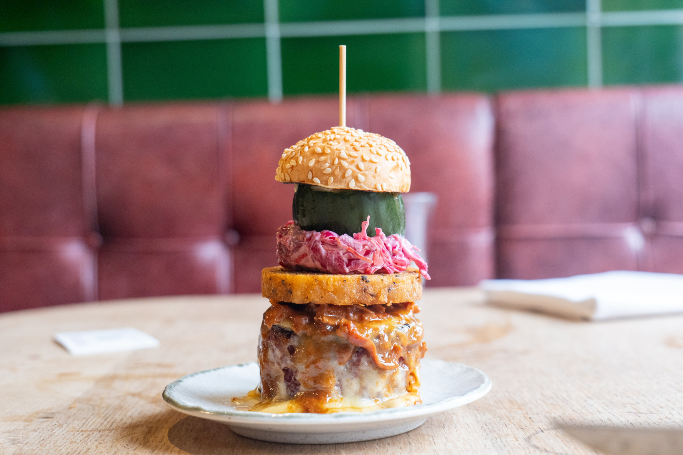Burger with smoked cheese and dill pickle