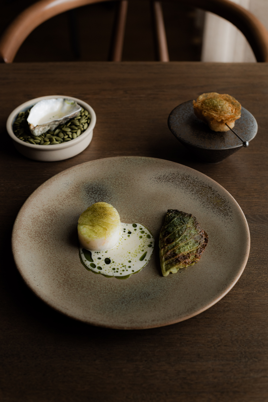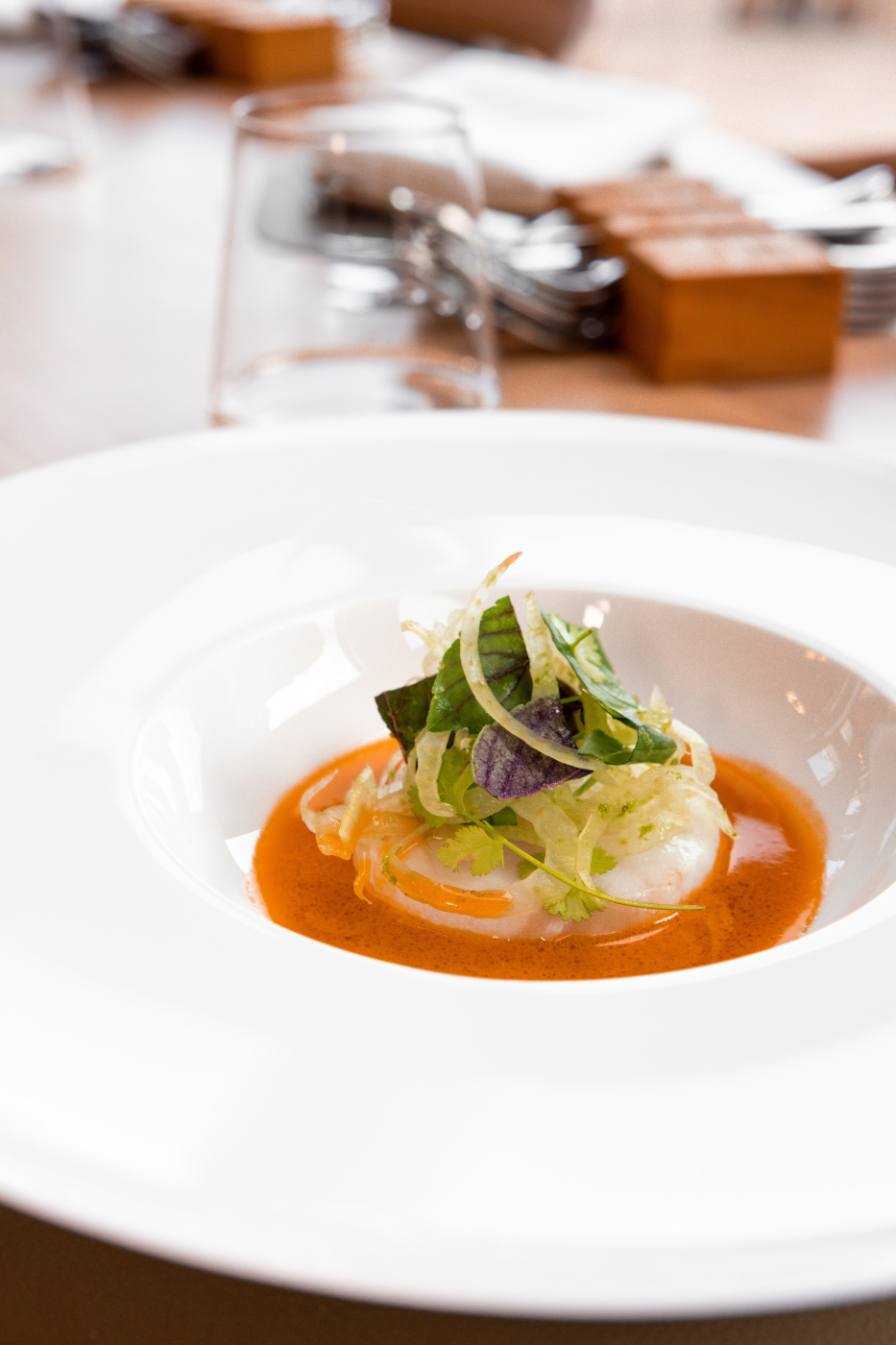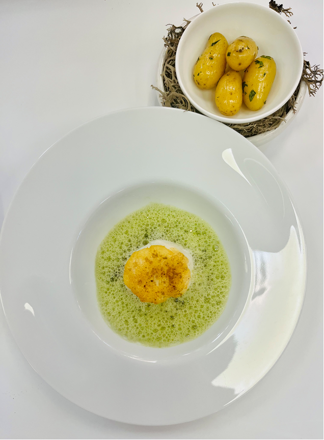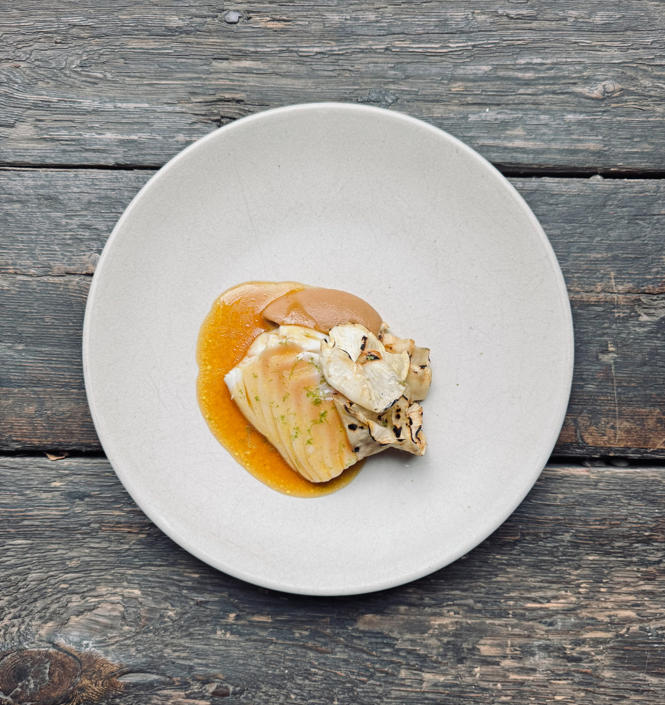 - Andrew Sheridan's Great British Menu dish, 'Gran was right about cod liver oil': Cod, sushi rice cracker, curry oil, smoked cod roe, saffron miso sauce, avocado cream, mango purée, elderflower vinaigrette