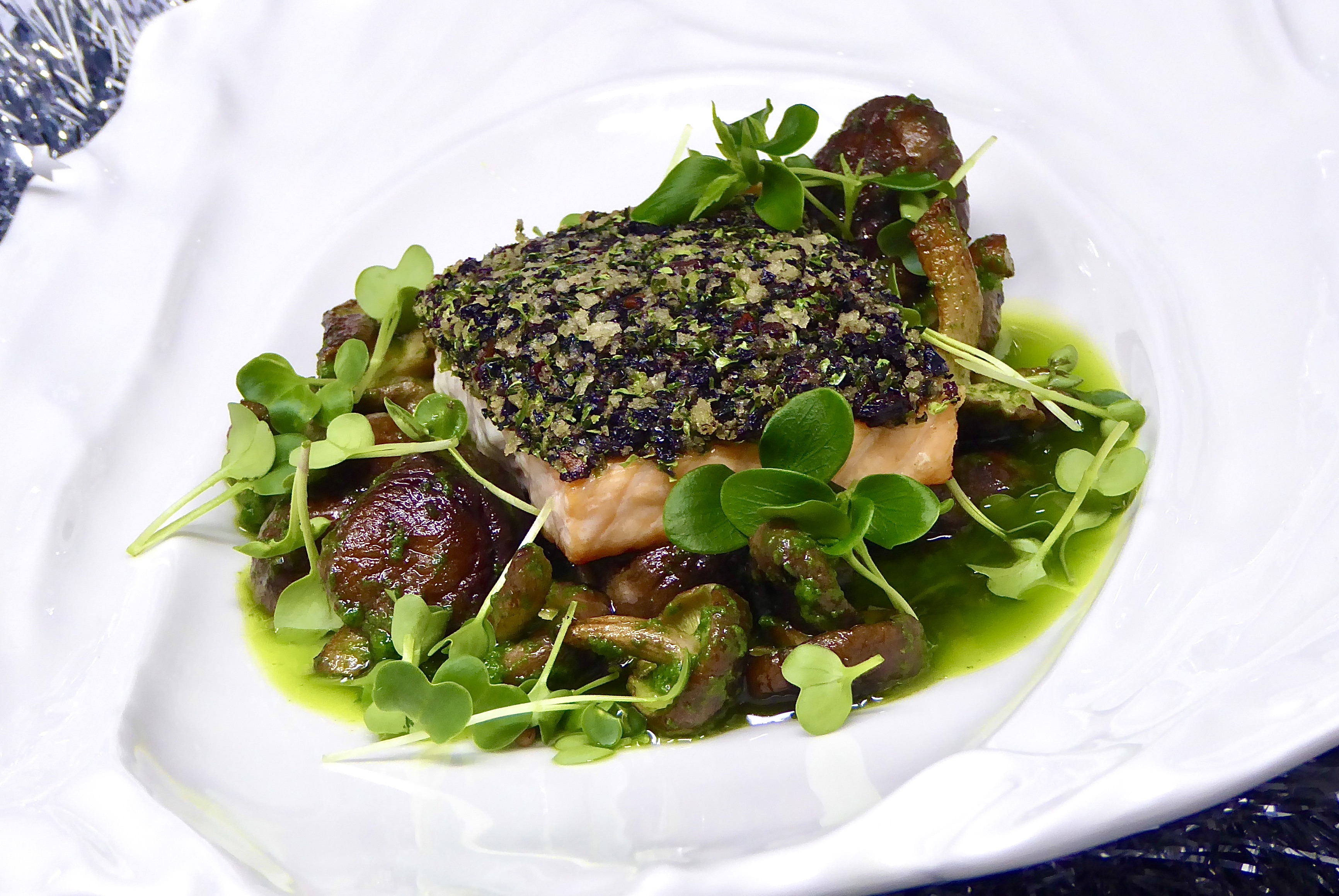 - Brocco cress 2 punnets Tahoon cress 2 punnets Fresh shiitake mushrooms 750gr Panko bread 50gr Dried Aonori seaweed 1 tbsp Melted butter 50gr Grapeseed oil 150ml Water 150ml Salmon fillet 4 pieces of 180gr