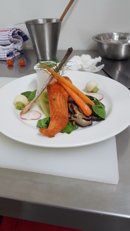 pan fried salmon, cucumber, prawns, fennel