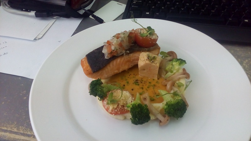 Pan fried Salmon with Asian Bouillabaise