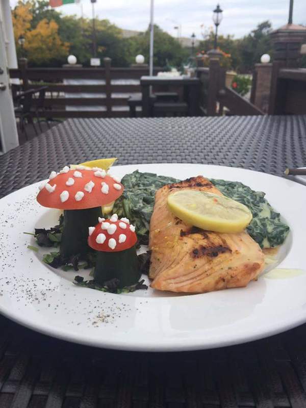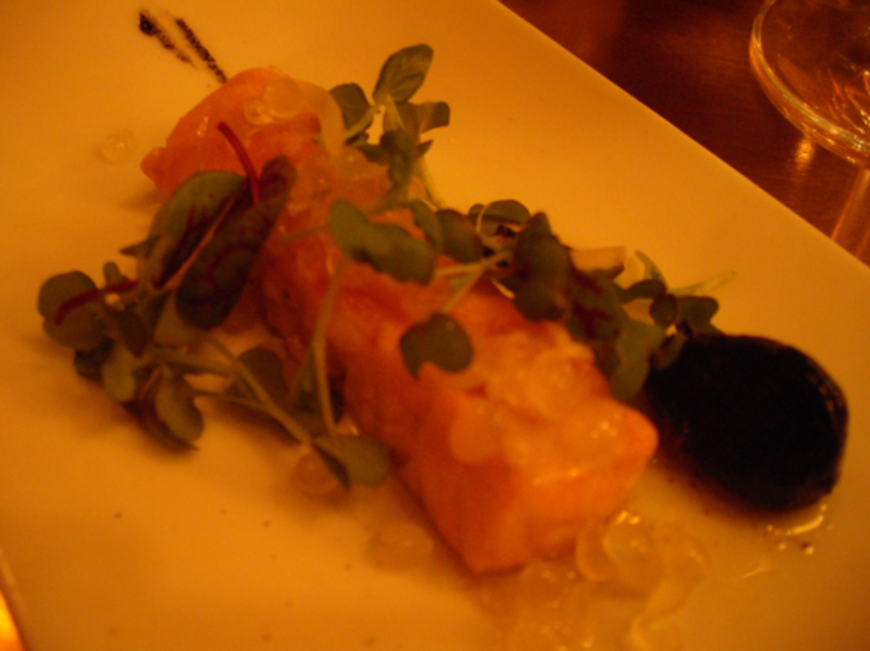 Grilled salmon | pumpkin cream and salicornia | lychee sauce | leek baby | marinated...