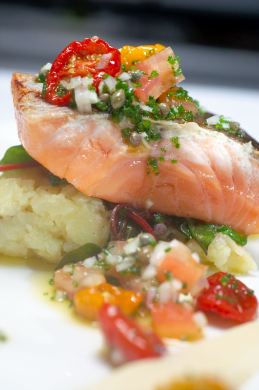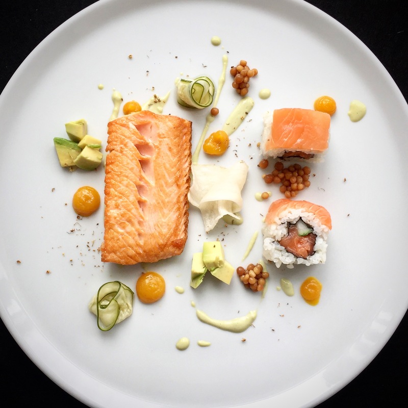 Grilled Salmon | orange puree | wasabi infusion | marinated cucumber | marinated...