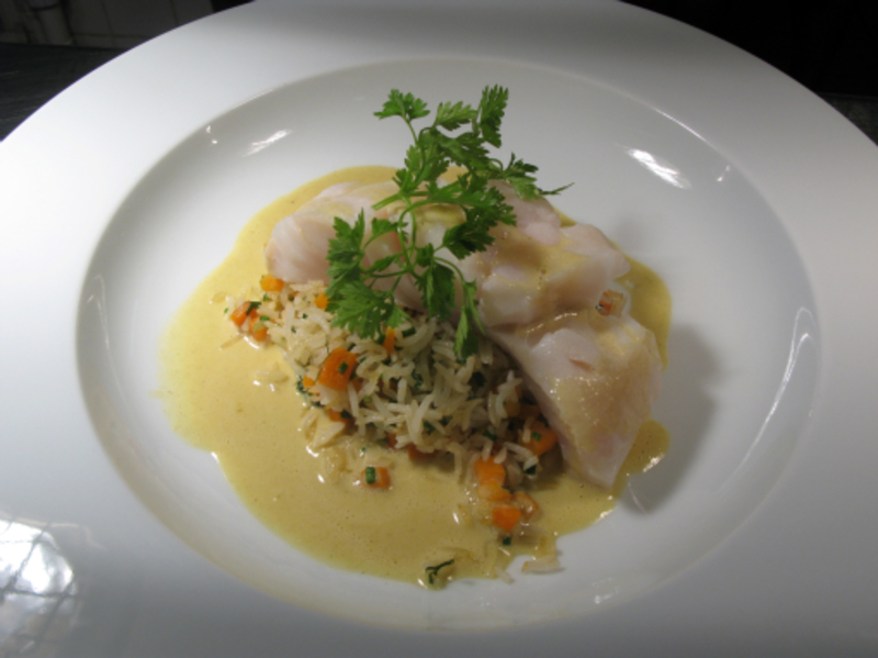 fragrant steamed cod w ricen lemon curried sauce