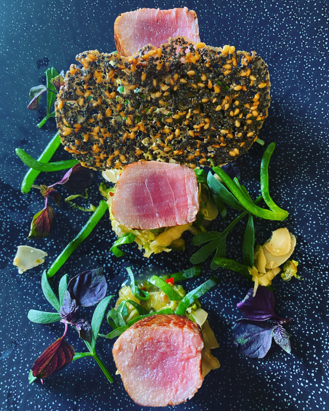 Tuna is and one of the most eaten fish in the world. It belongs to a subgroup of the mackerel family and consists of 8 species that vary in colour and size. Tuna is a nomadic species and is found throughout the world's oceans. It can be eaten fresh or tinned. Tuna loin is commonly eaten raw or seared and lightly seasoned, while canned tuna is precooked for a long time and often prepared heavily dressed.